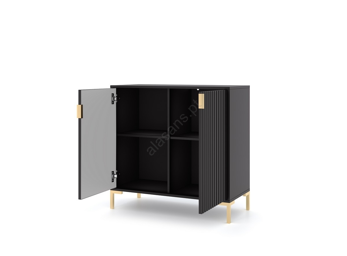 • Possui quatro prateleiras e duas portas com frisos verticais.