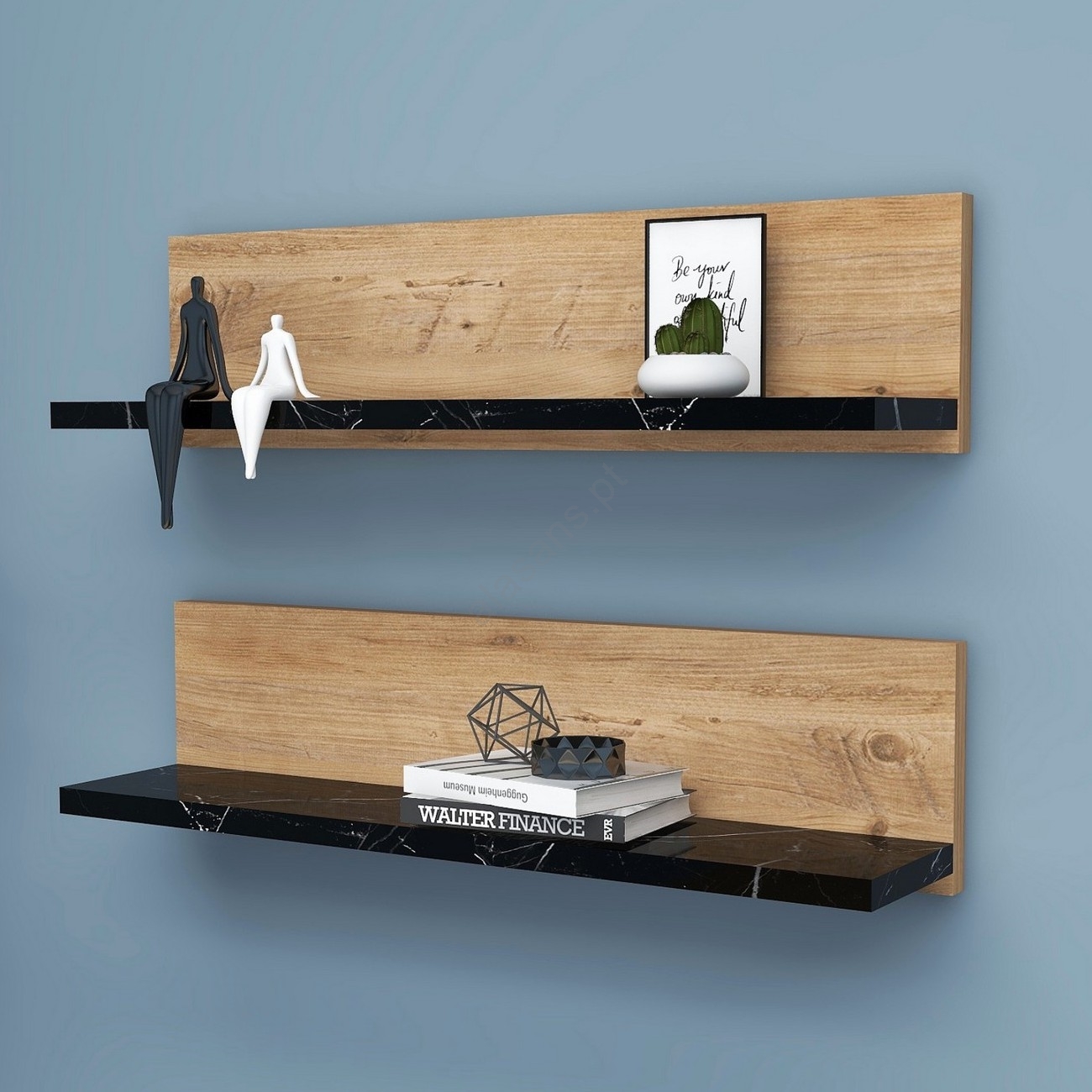 Conjunto com 2 prateleiras SHELFIE, pinho/preto