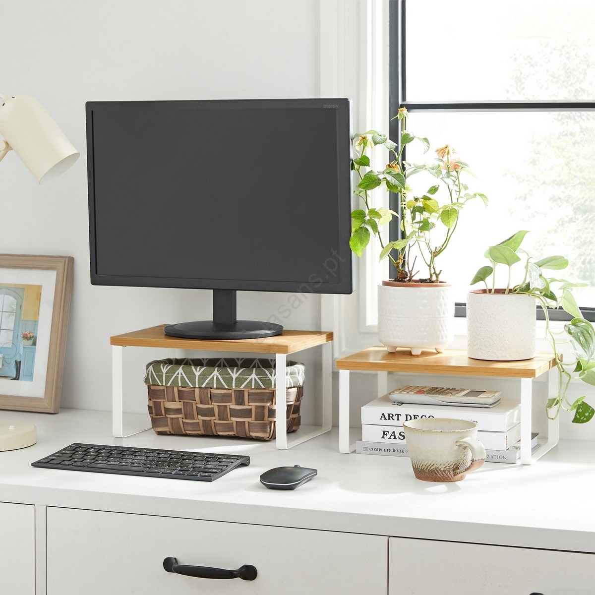 • As prateleiras sobre a bancada, suportadas por bambu de alta resistência e metal robusto, suportam até 15 kg cada.