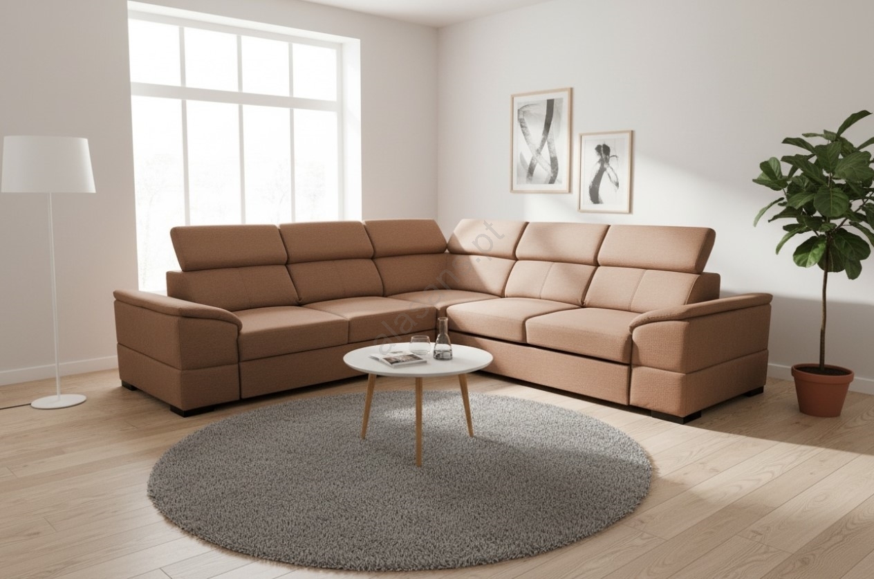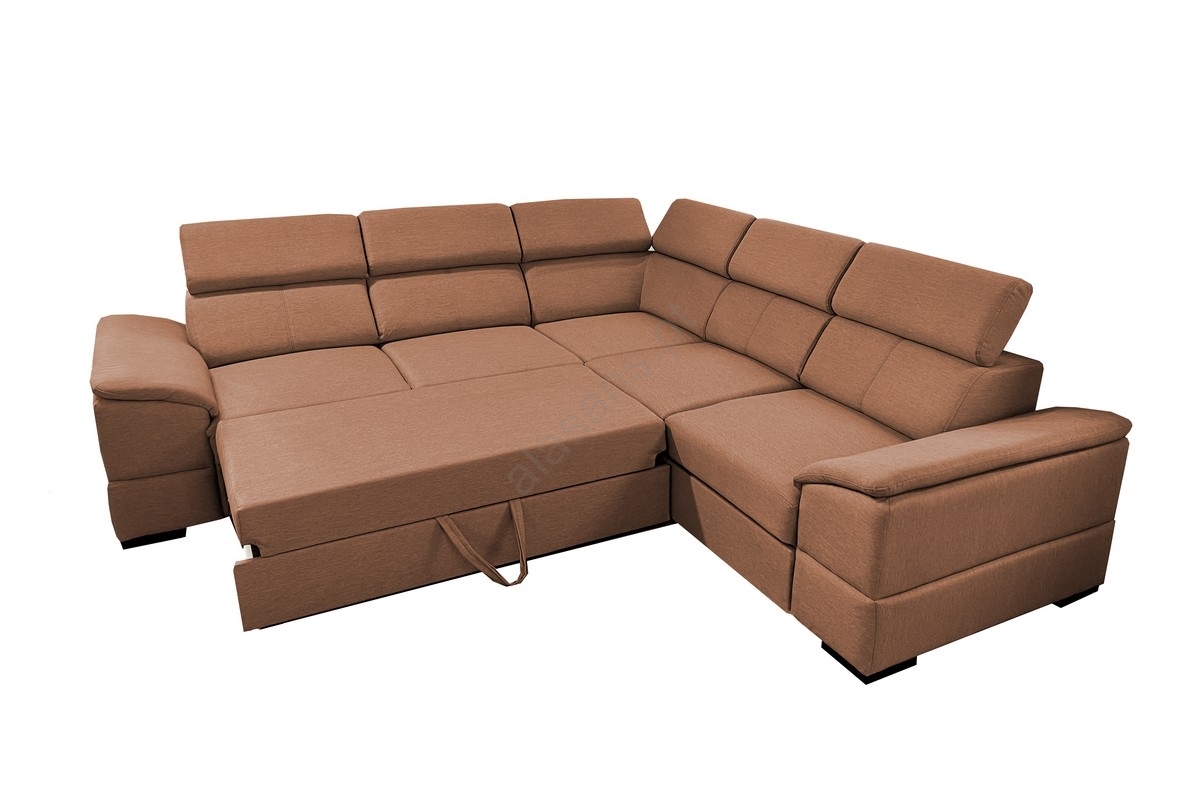 • Sofá-cama de canto reversível com baú de arrumação GRANADA, castanho