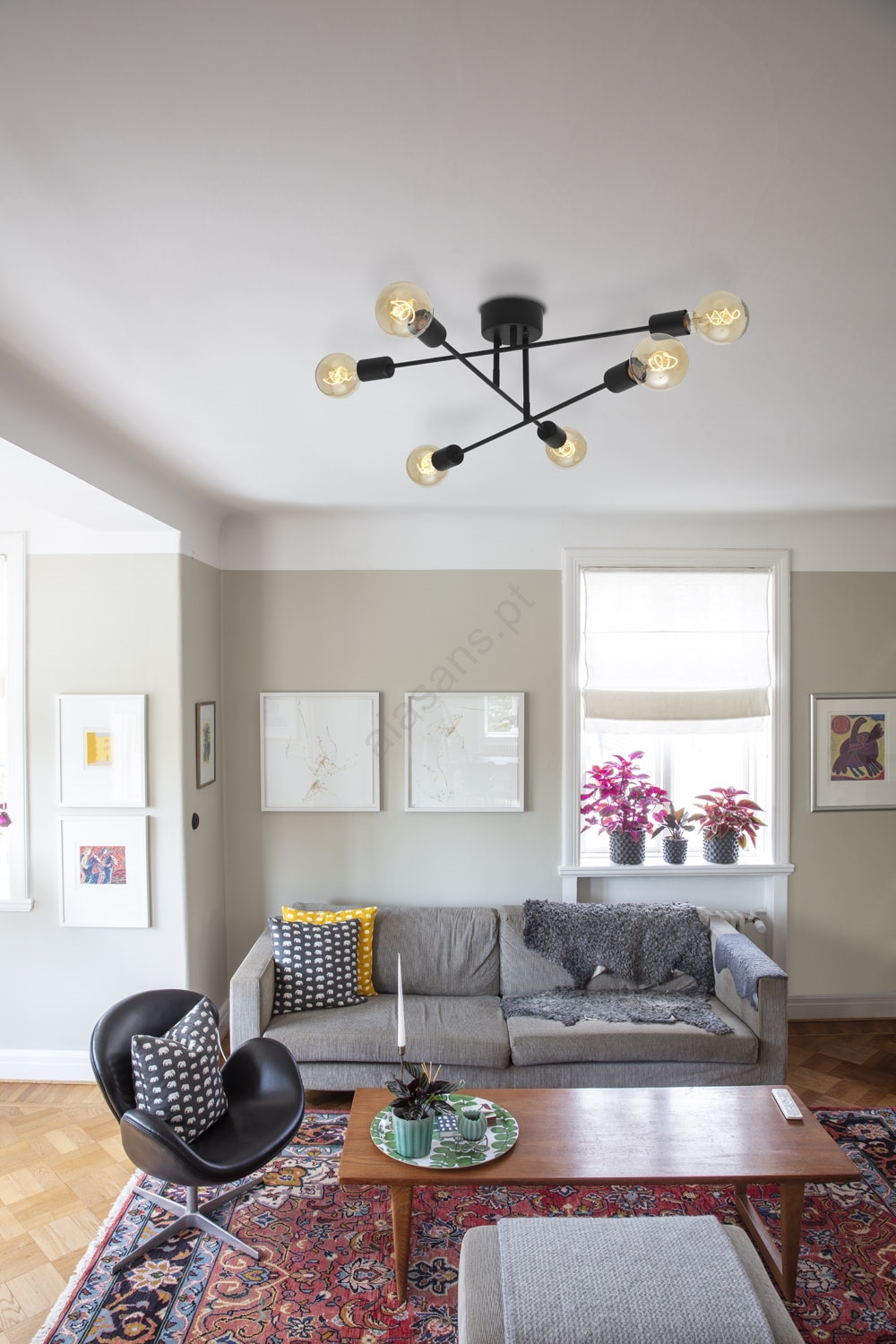 Cottex - Lustre de tecto de montagem em superfície BATON 6xE27/60W/230V preto caracteriza-se por um design agradável e funcional.  Uma lâmpada com casquilho E27 é adequada para a iluminação Aqui, pode comprar outras lâmpadas a preços vantajosos. Terá um complemento interessante para a sua casa.