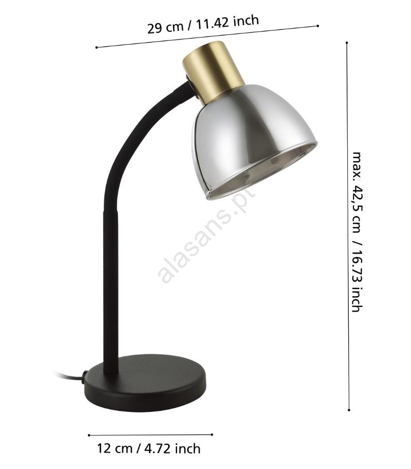 Eglo - Candeeiro de mesa 1xE14/25W/230V dourado/preto caracteriza-se por um design agradável e funcional.  Uma lâmpada com casquilho E14 é adequada para a iluminação Aqui, pode comprar outras lâmpadas a preços vantajosos. Terá um complemento interessante para a sua casa.