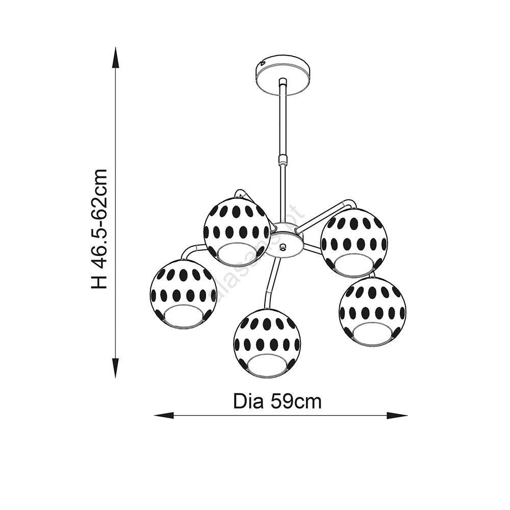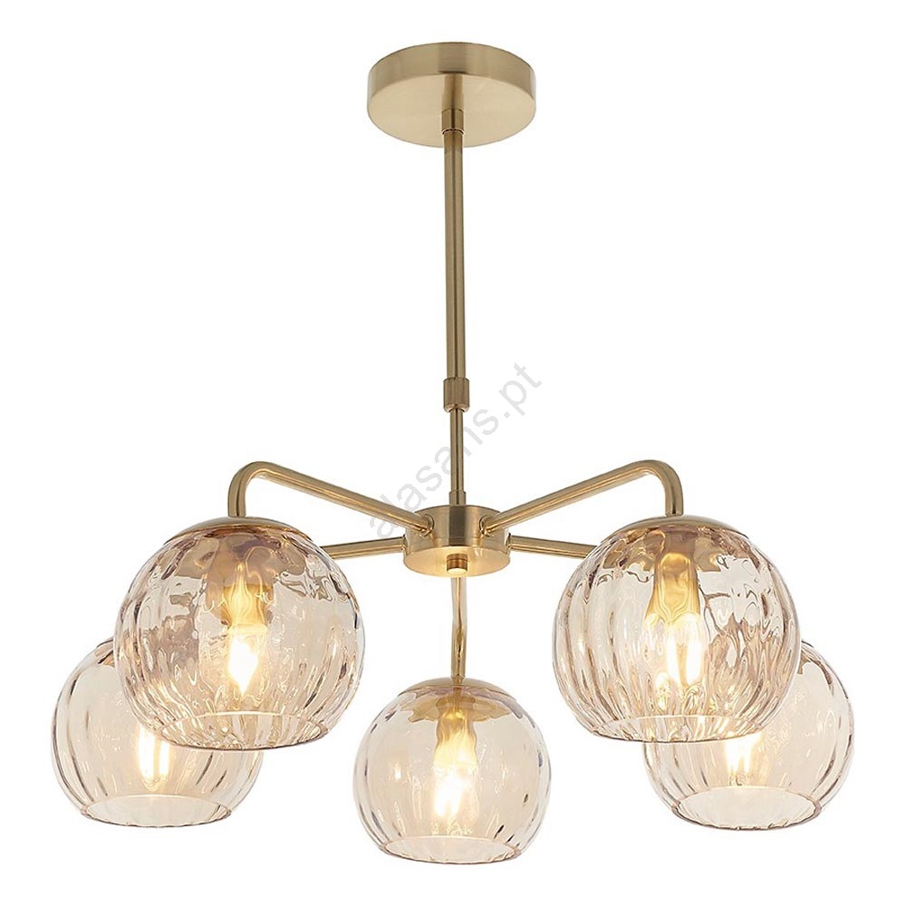 Endon 91969 - Lustre com haste DIMPLE 5xE14/7W/230V dourado caracteriza-se por um design agradável e funcional.  Uma lâmpada com casquilho E14 é adequada para a iluminação Aqui, pode comprar outras lâmpadas a preços vantajosos. Terá um complemento interessante para a sua casa.