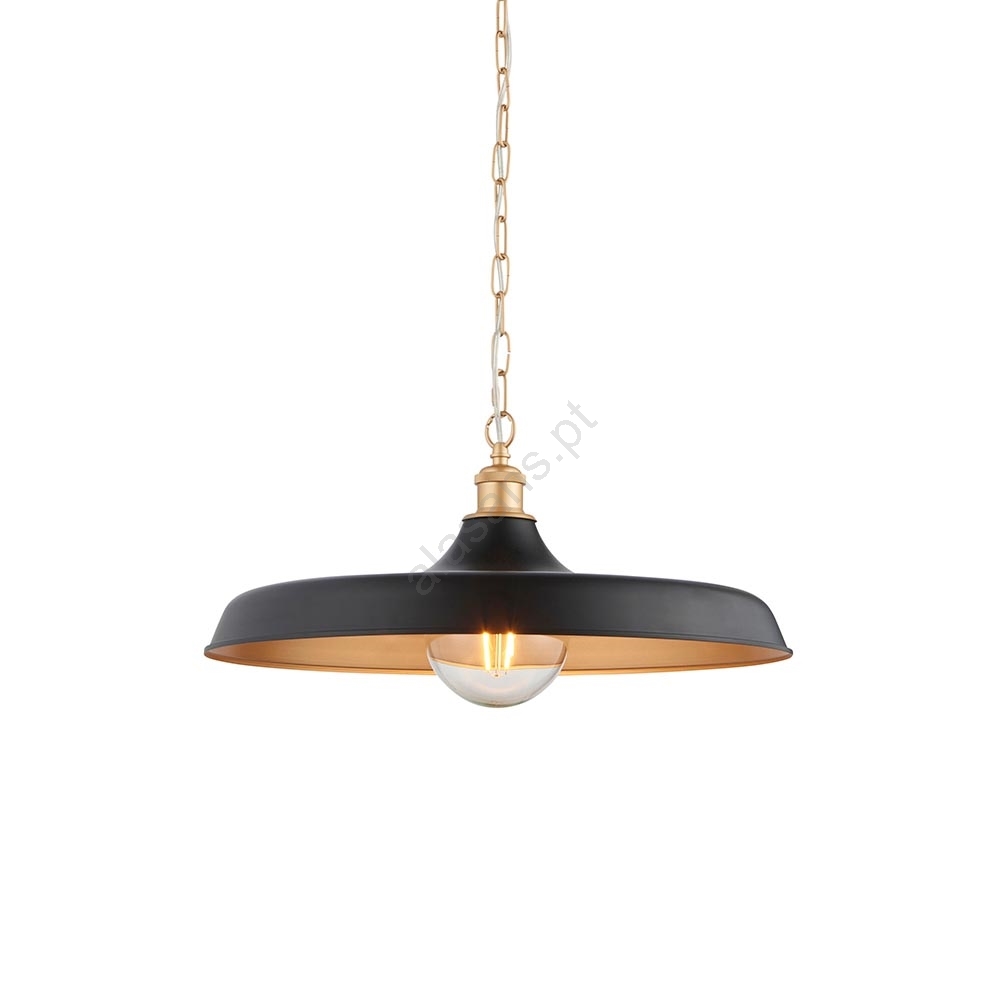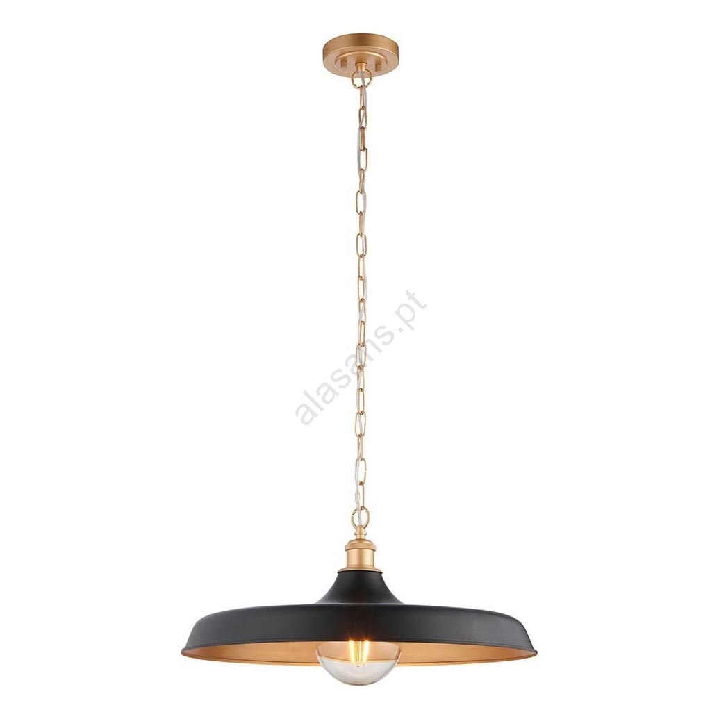 Endon 99998 - Lustre com corrente SABIAN 1xE27/10W/230V preto/dourado caracteriza-se por um design agradável e funcional.  Uma lâmpada com casquilho E27 é adequada para a iluminação Aqui, pode comprar outras lâmpadas a preços vantajosos. Terá um complemento interessante para a sua casa.