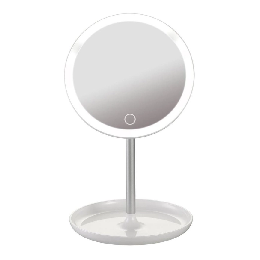 • Espelho de maquiagem com iluminação LED e intensidade de luz ajustável.