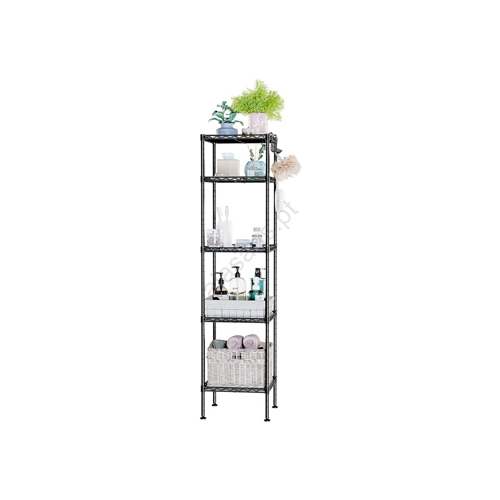 • Com 5 prateleiras (cada uma com capacidade até 20 kg) pode guardar toalhas, livros, plantas e outros itens úteis.