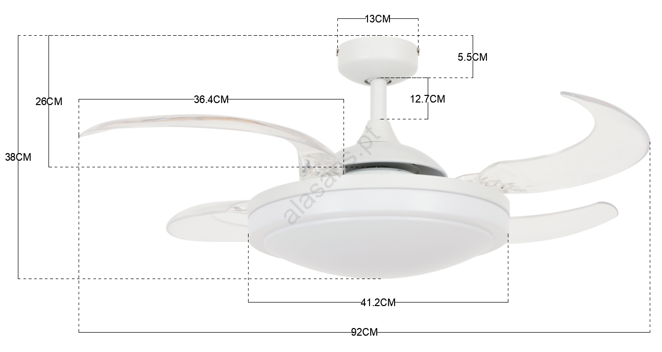 • Diâmetro (com pás recolhidas): 41,5 cm.