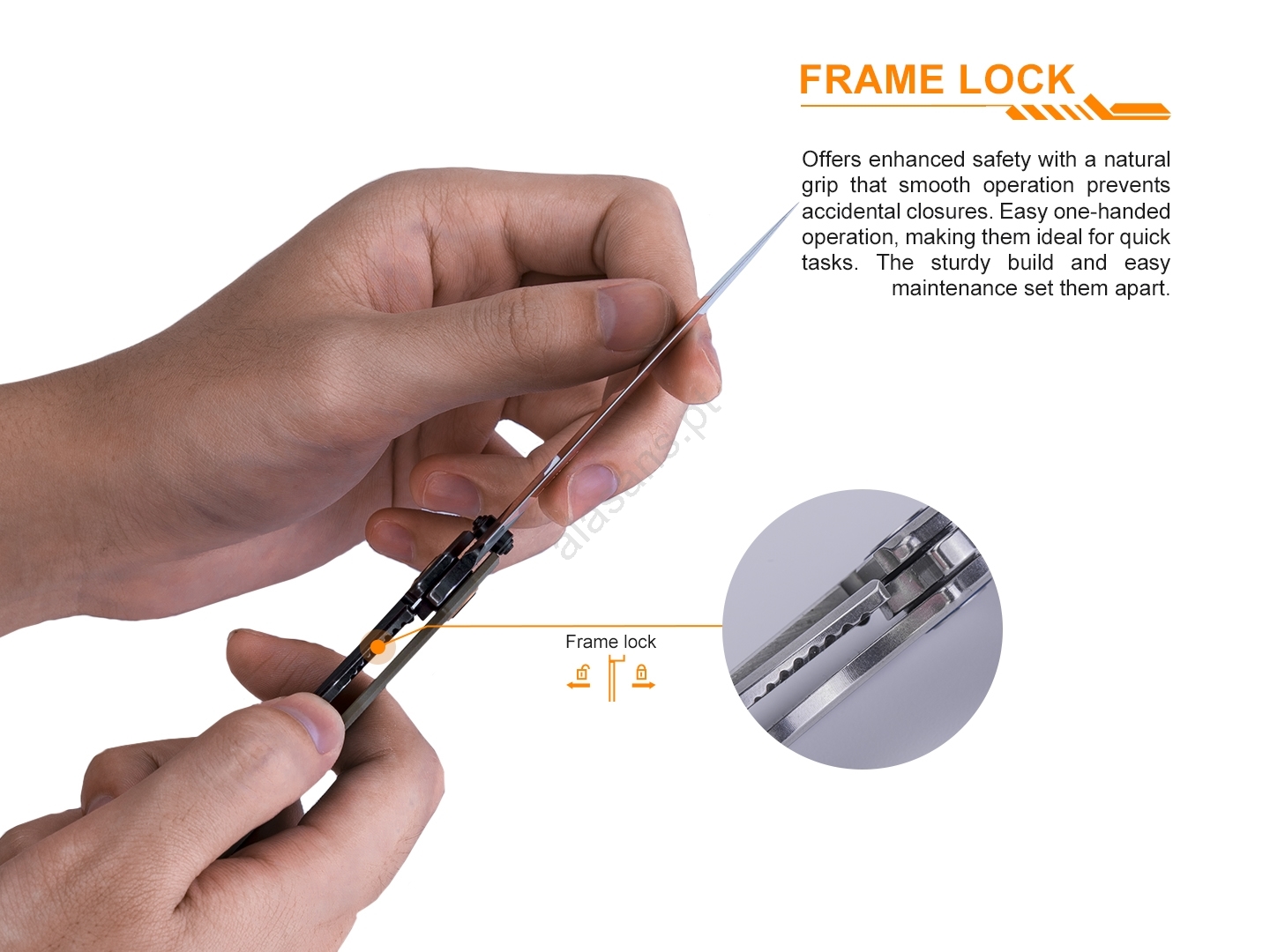 • Para evitar fechamento acidental, a faca conta com trava frame lock.