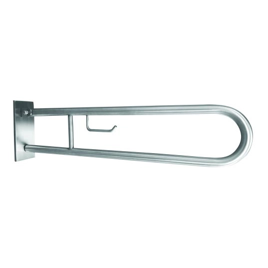 • Barra de apoio rebatível em U com suporte integrado para papel higiénico, para máxima praticidade.