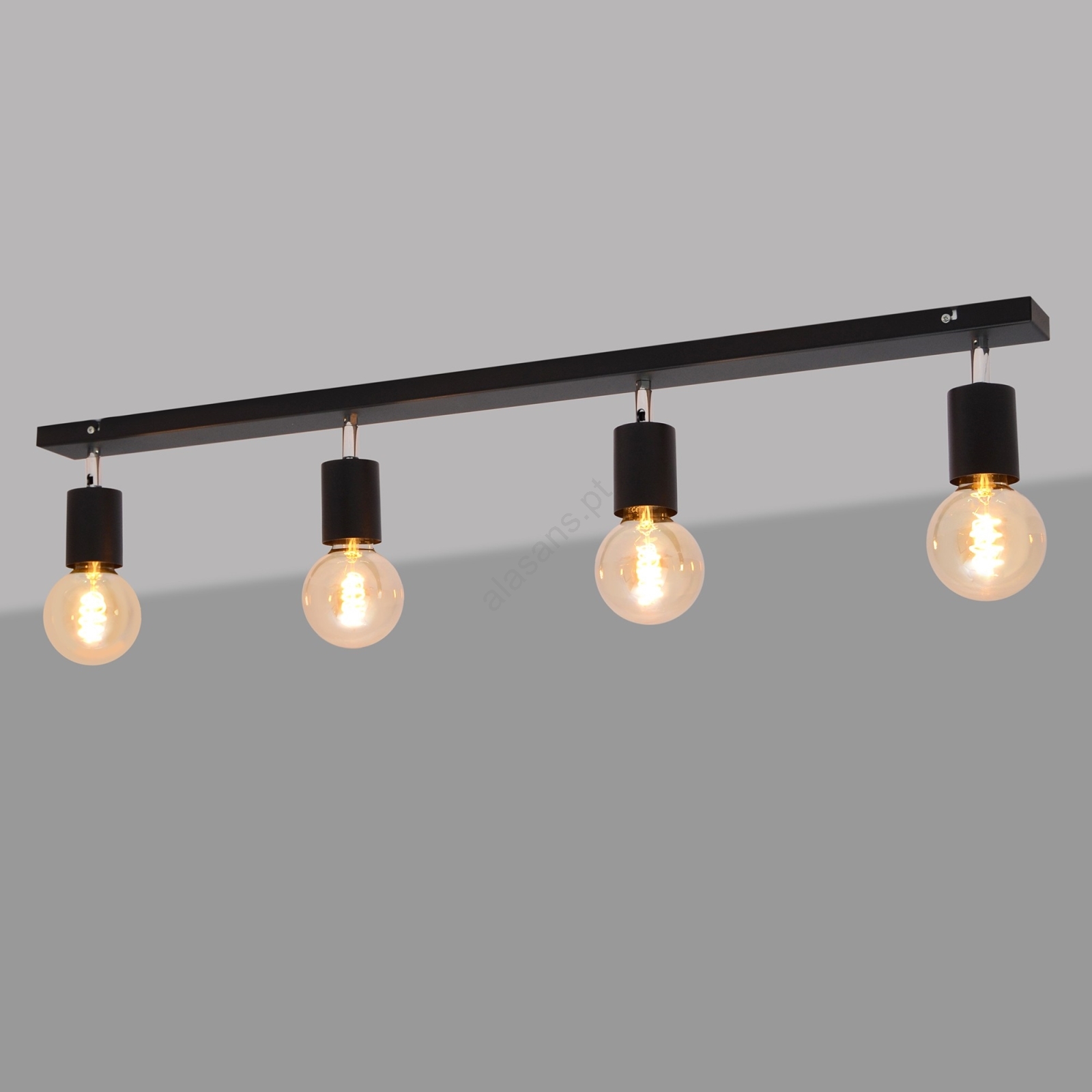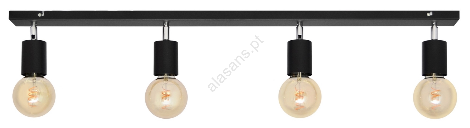 Foco TUNE 4xE27/20W/230V preto caracteriza-se por um design agradável e funcional.  Uma lâmpada com casquilho E27 é adequada para a iluminação Aqui, pode comprar outras lâmpadas a preços vantajosos. Terá um complemento interessante para a sua casa.
