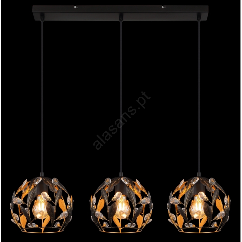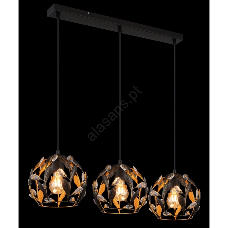 Globo - Lustre pendente com cabo 3xE27/40W/230V caracteriza-se por um design agradável e funcional.  Uma lâmpada com casquilho E27 é adequada para a iluminação Aqui, pode comprar outras lâmpadas a preços vantajosos. Terá um complemento interessante para a sua casa.