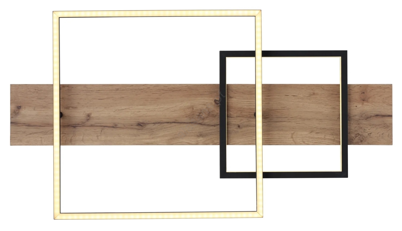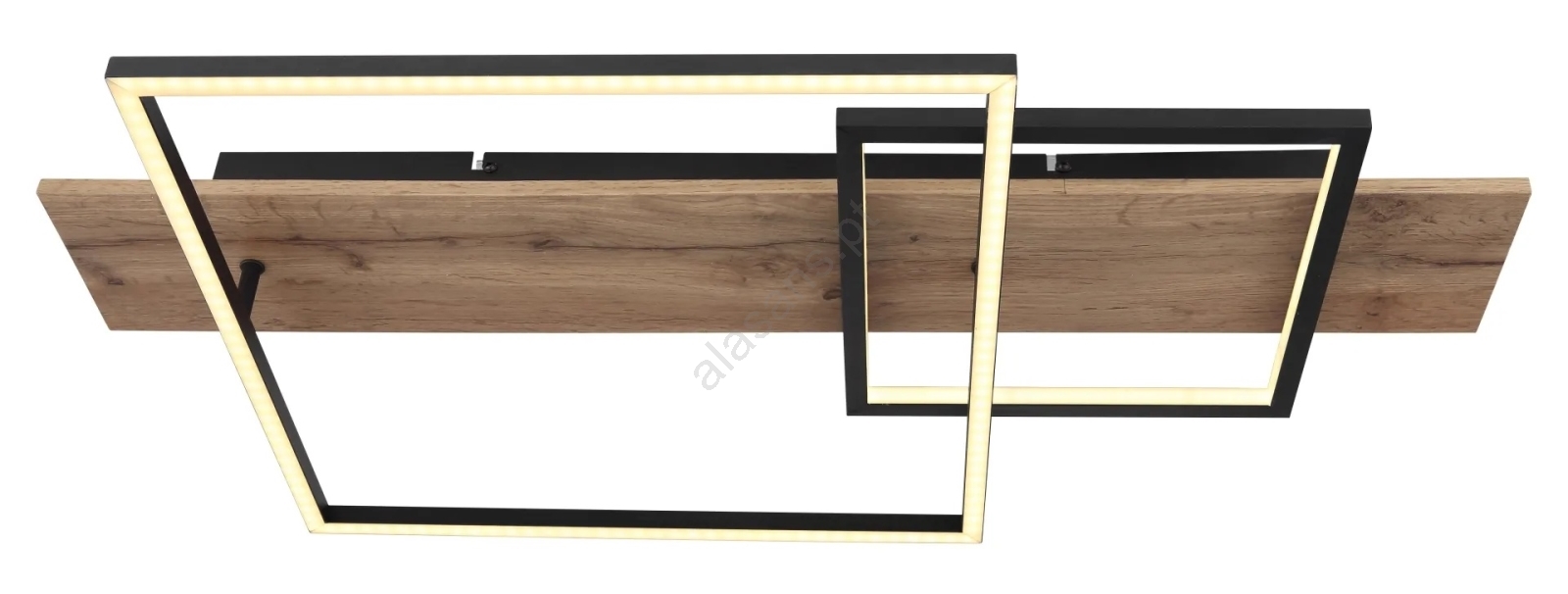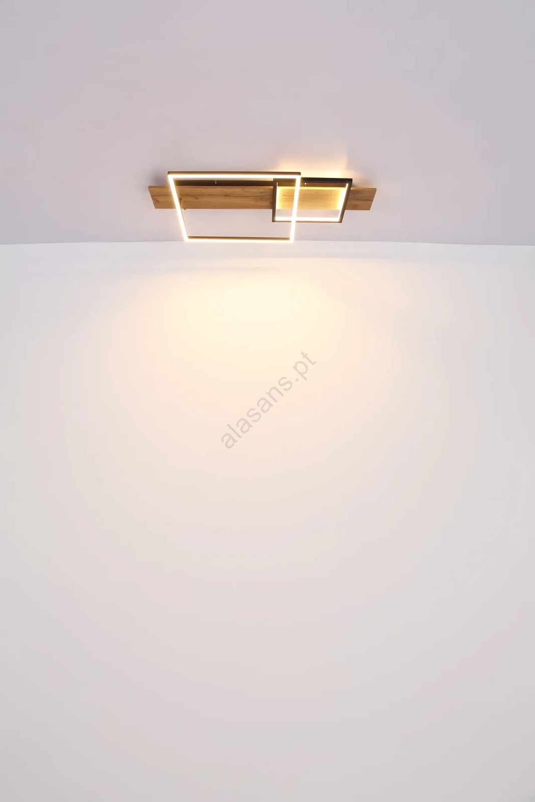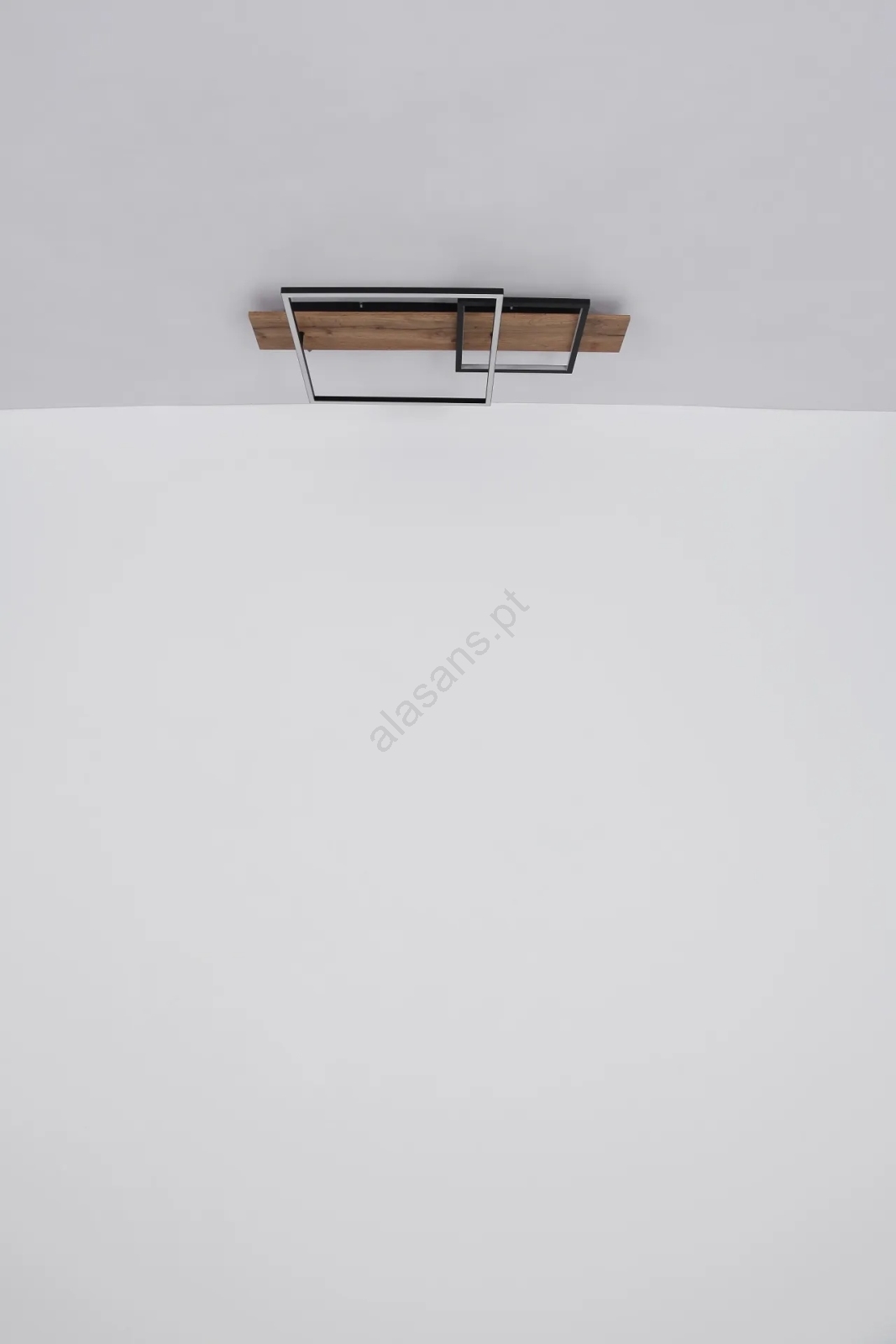 • Candeeiro de teto combina metal preto mate, MDF com padrão de madeira, alumínio preto e plástico opalino, conferindo-lhe um aspeto moderno e elegante.