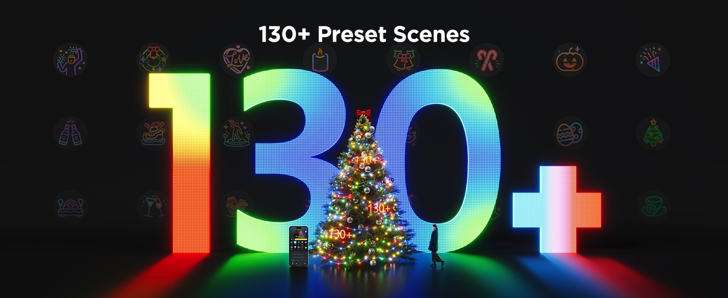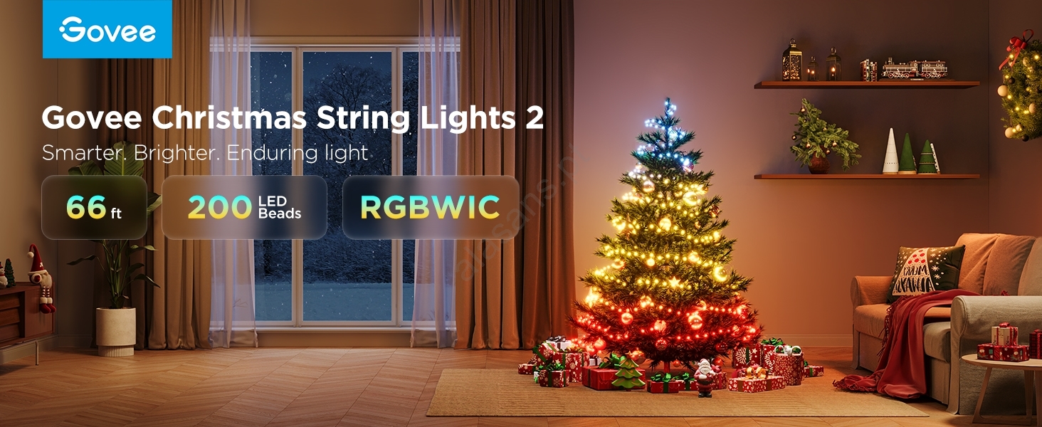 Govee - Corrente de Natal LED RGBICW para exterior 2700-6500K 20m Wi-Fi Matter IP66