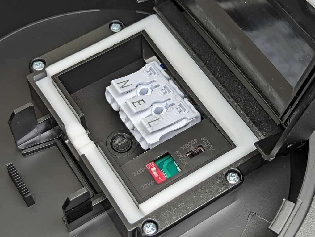 • A conexão da luminária é facilitada por um terminal sem parafusos de fácil acesso.