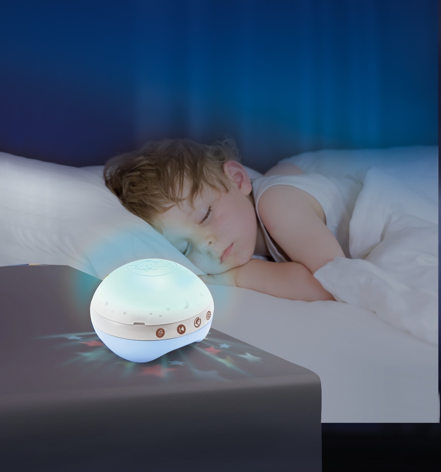 • Luz noturna e projetor para mesa de cabeceira, para crianças a partir de 18 meses.