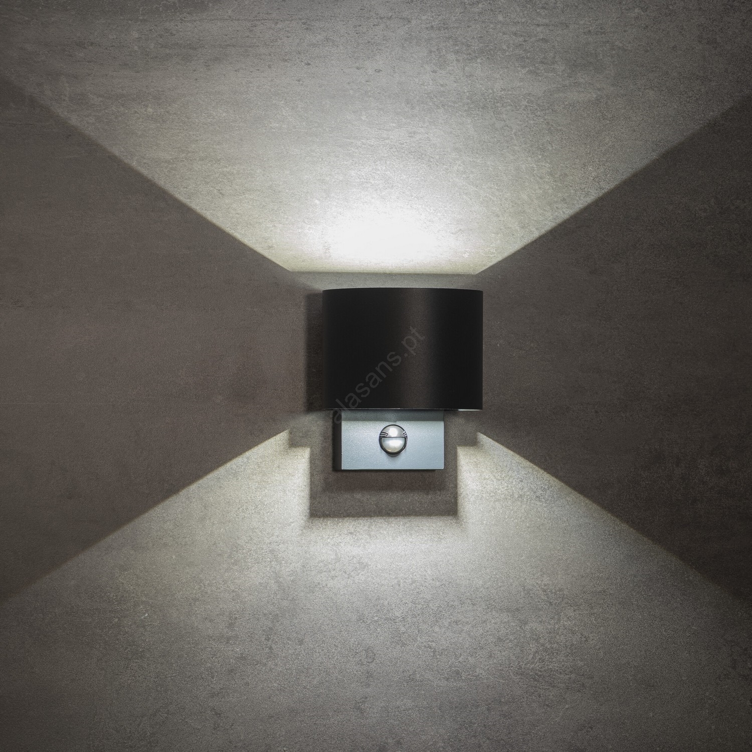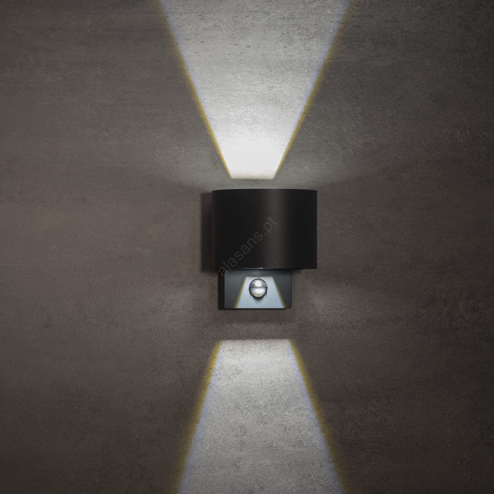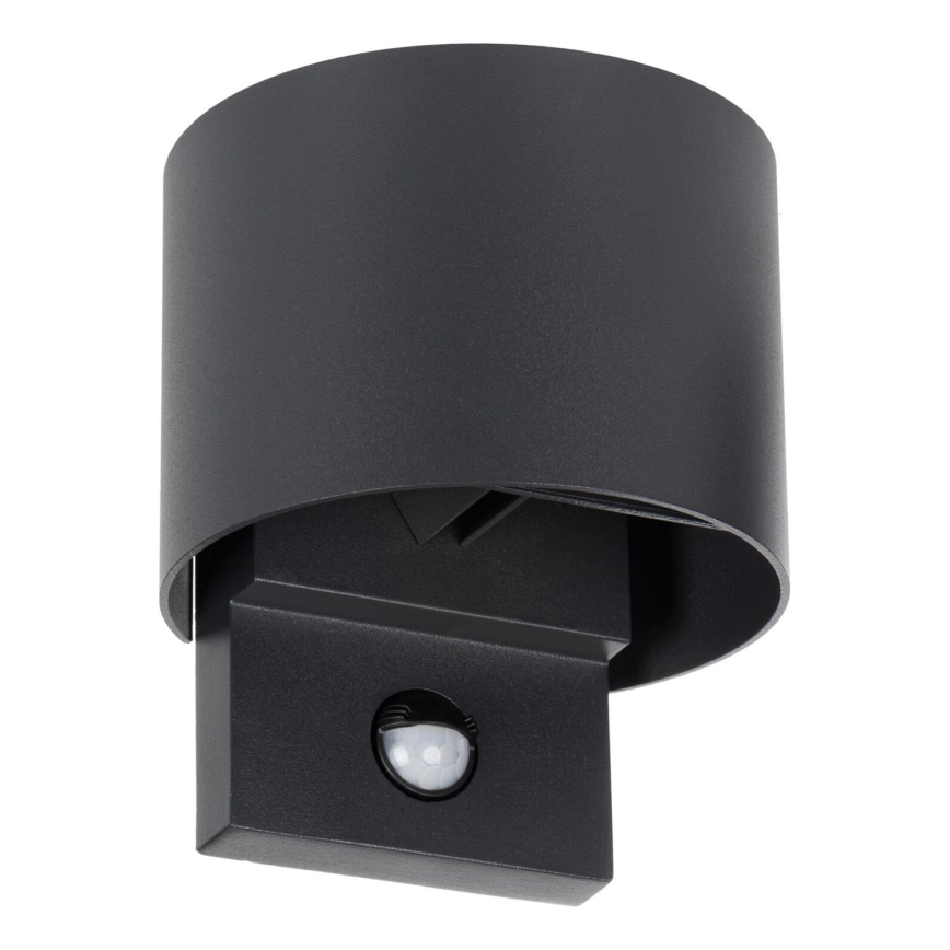 Candeeiro de parede exterior REKA LED com sensor de movimento e crepúsculo, 7W, 230V, IP54, antracite, redondo