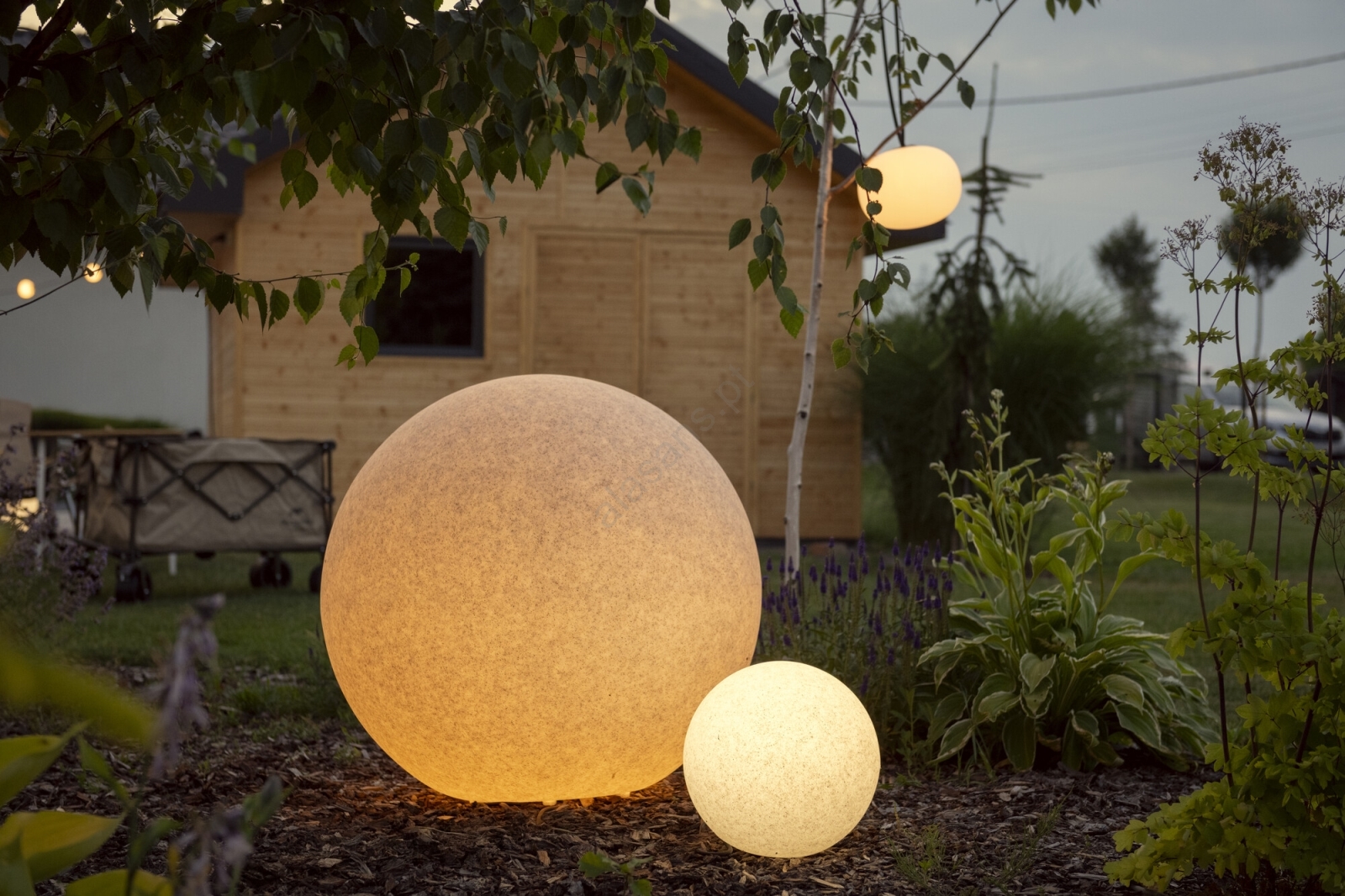 • Esta esfera luminosa com aspeto de pedra é ideal para jardins de pedra ou para o entorno de arbustos no seu jardim.