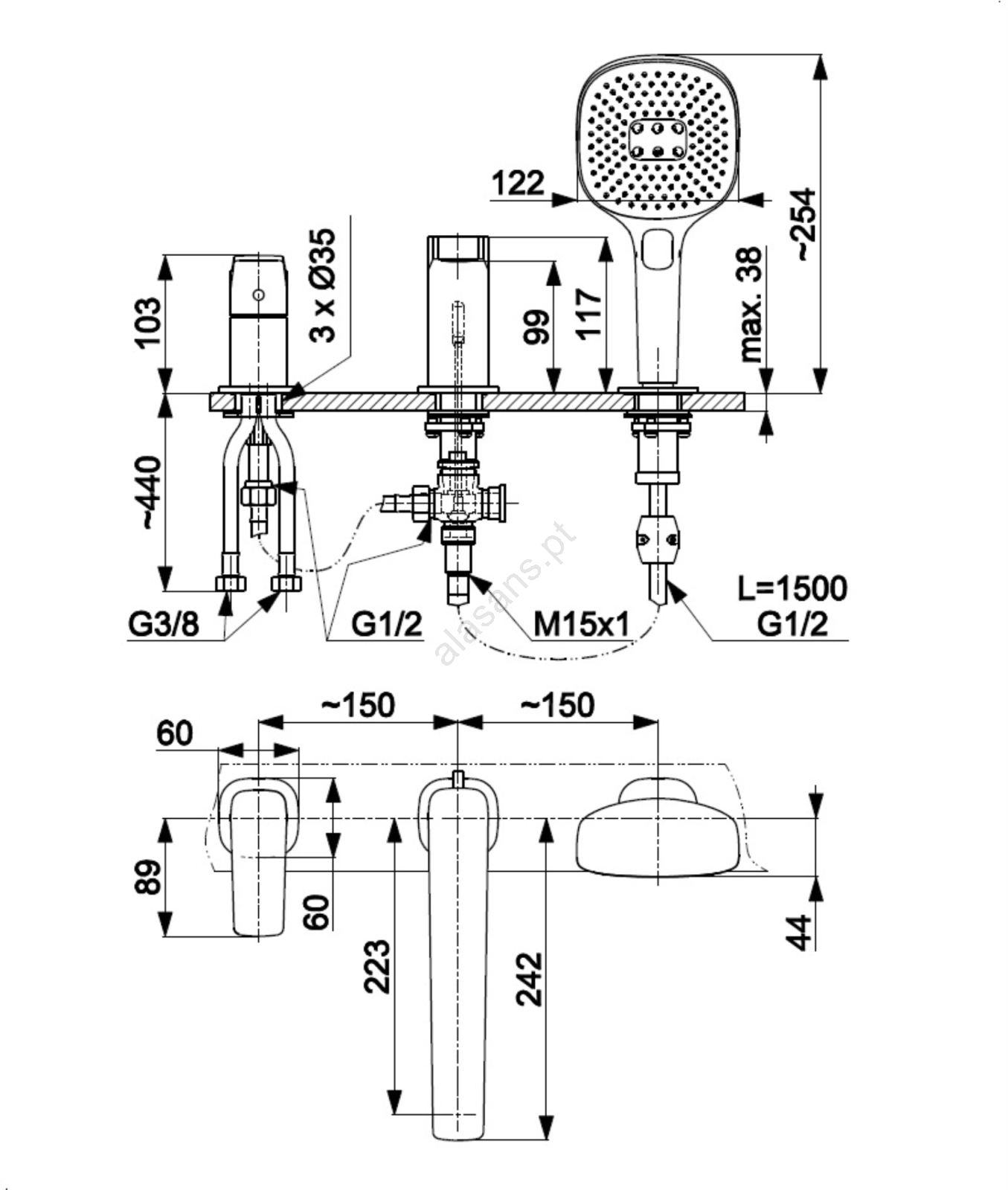 • Esta torneira de banheira de 3 furos é um complemento elegante para qualquer casa de banho.