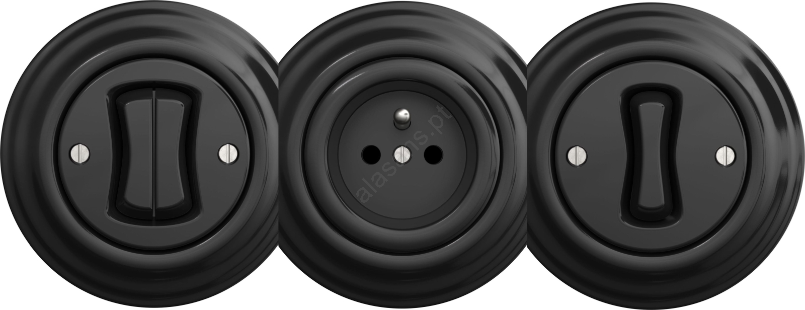 Kliklap - Interruptor duplo retro sem moldura, preto