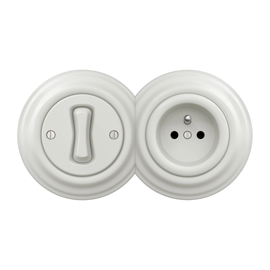 Kliklap - Interruptor unipolar retro n.º 1 e tomada 230 V com moldura branca
