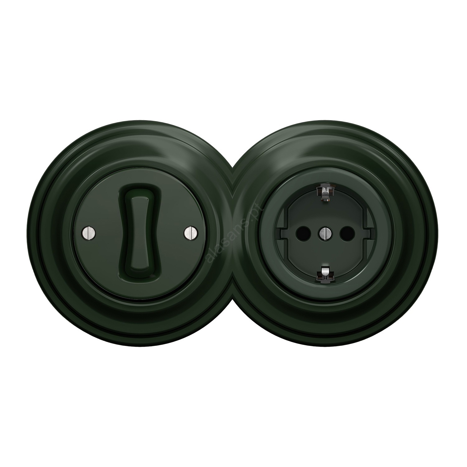Kliklap - Retro interruptor unipolar n.º 1 e tomada SCHUKO 230V com moldura verde