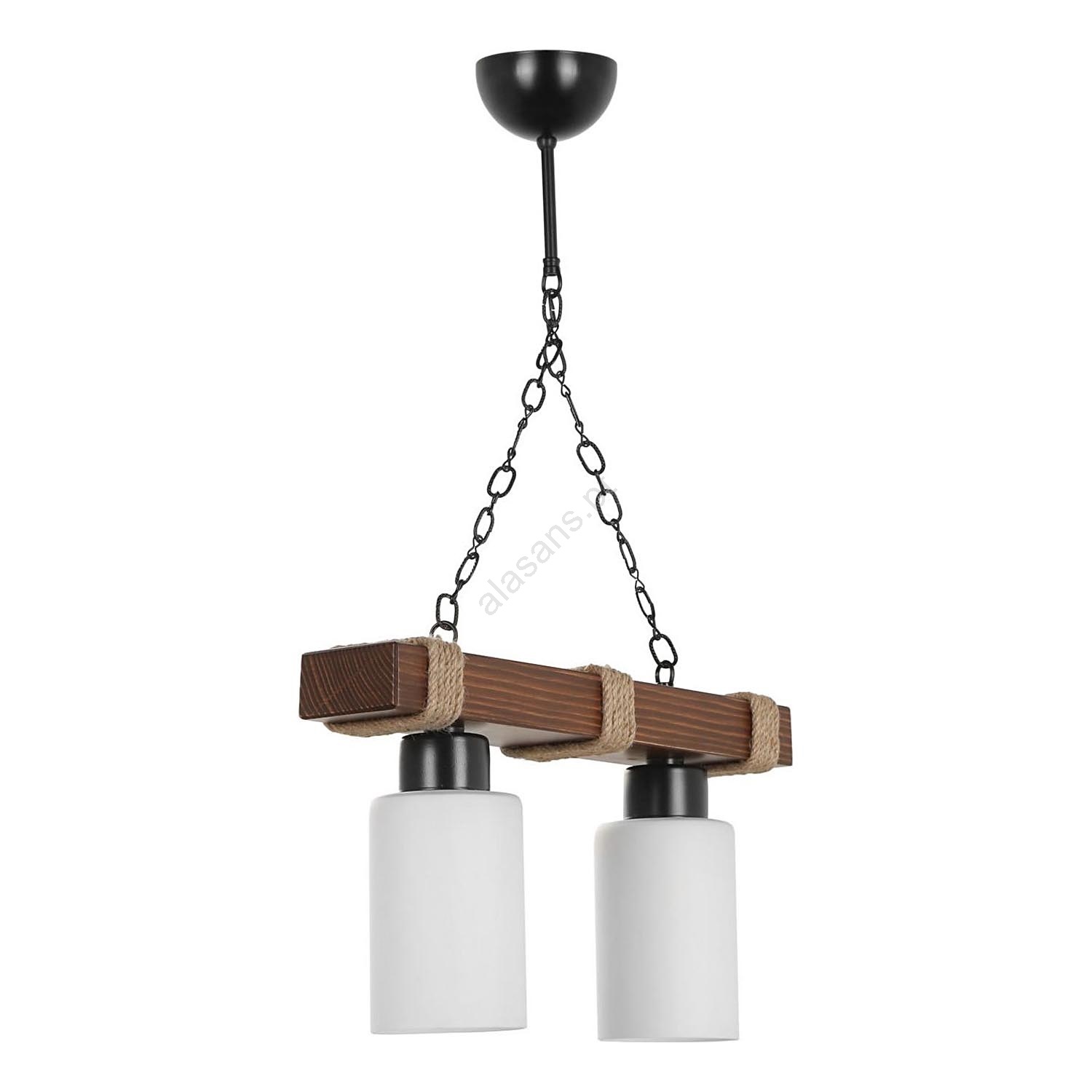 Lustre suspenso com corrente JASMIN 2xE27/40W/230V castanho/branco caracteriza-se por um design agradável e funcional.  Uma lâmpada com casquilho E27 é adequada para a iluminação Aqui, pode comprar outras lâmpadas a preços vantajosos. Terá um complemento interessante para a sua casa.