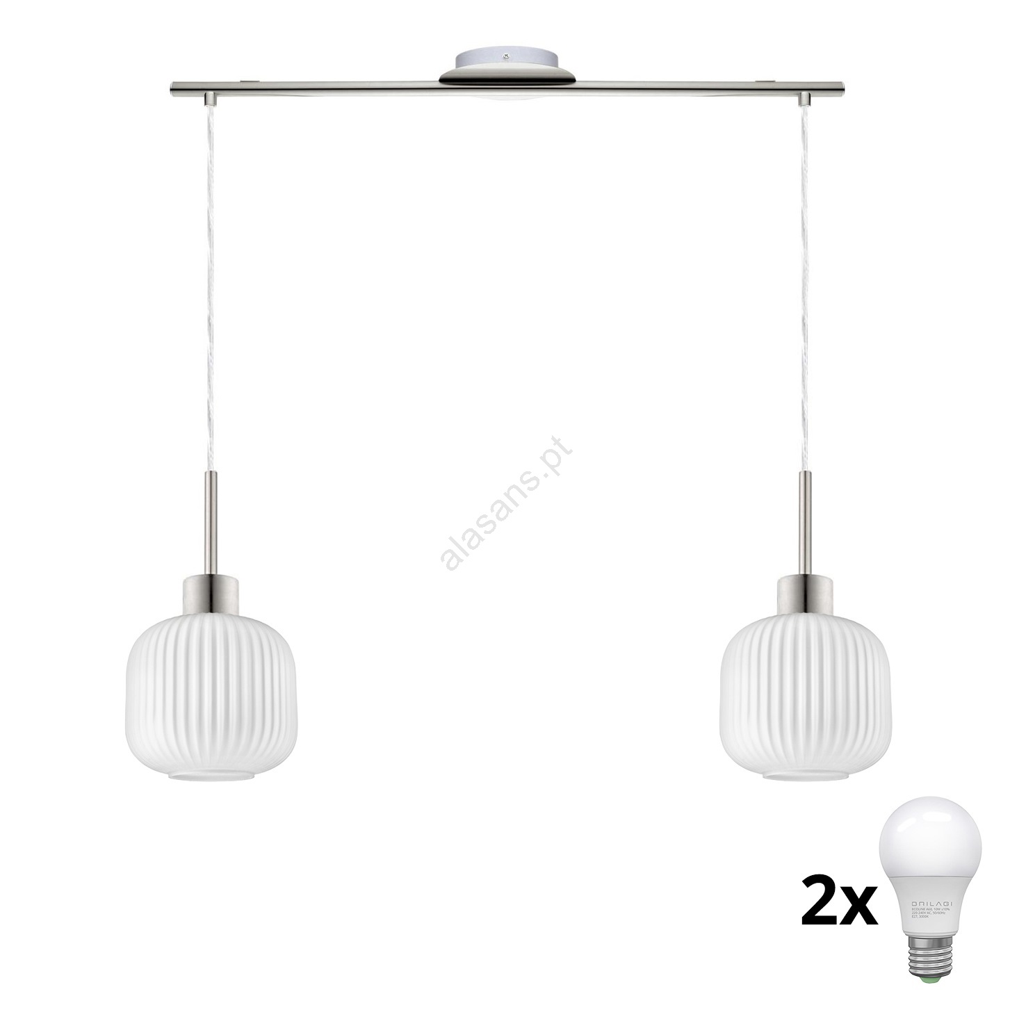 Lustre LED suspenso por cabo HARMA 2xE27/60W/230V cromado mate/branco caracteriza-se por um design agradável e funcional.  Uma lâmpada com casquilho E27 é adequada para a iluminação Aqui, pode comprar outras lâmpadas a preços vantajosos. Terá um complemento interessante para a sua casa.