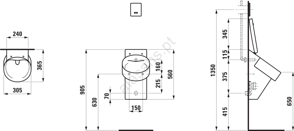 • O mictório dispõe de orifícios de montagem para tampa (não incluída).