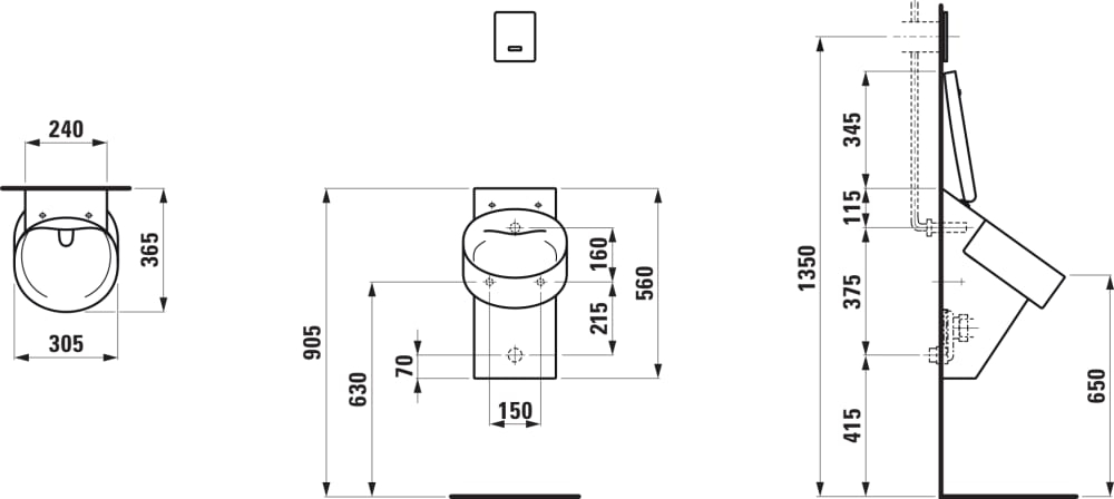 • O mictório vem equipado com orifícios de montagem para tampa (não incluída na embalagem).