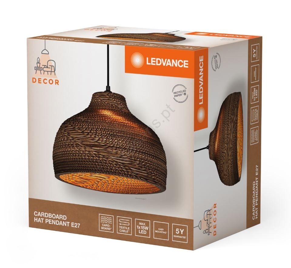Ledvance - Candeeiro suspenso DECOR CARDBOARD 1xE27/15W/230V diâmetro 36 cm