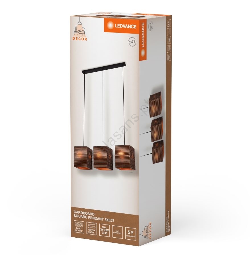 Ledvance - Candeeiro suspenso DECOR CARDBOARD 3xE27/15W/230V caracteriza-se por um design agradável e funcional.  Uma lâmpada com casquilho E27 é adequada para a iluminação Aqui, pode comprar outras lâmpadas a preços vantajosos. Terá um complemento interessante para a sua casa.