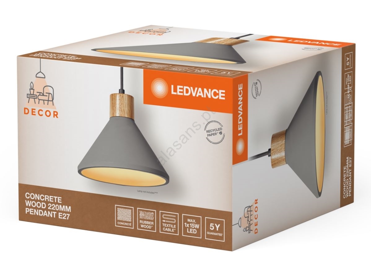 Ledvance - Candeeiro suspenso DECOR CONCRETE 1xE27/15W/230V diâmetro 22 cm betão cinzento