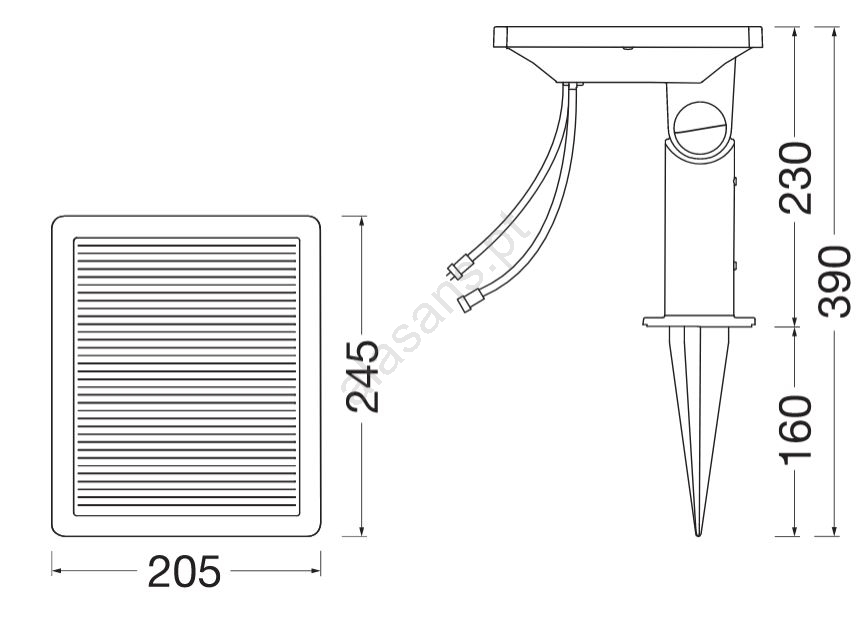 • Ao conectar à rede elétrica, a luminária alterna automaticamente para corrente da rede assim que a bateria do painel solar se esgota.