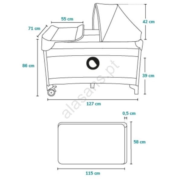 • Inclui colchão dobrável de viagem, que também pode ser usado no berço auxiliar (dimensão 120x60 cm), o berço auxiliar também está incluído no pacote.