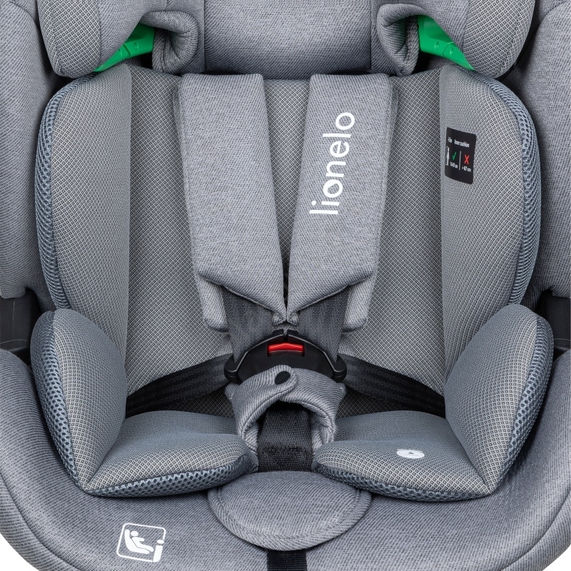 • Lionelo Lavender i-Size é uma cadeira auto para crianças de 76–150 cm, instalada no sentido da marcha.