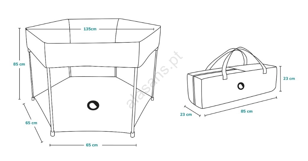• O cercado é fornecido com uma bolsa de transporte com alça prática para facilitar o transporte.