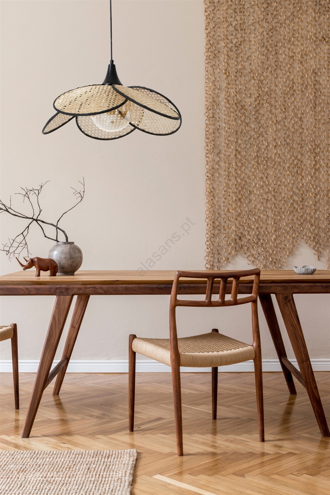 Lustre suspenso com cabo FUME 1xE27/40W/230V Ø45 cm preto/bege caracteriza-se por um design agradável e funcional.  Uma lâmpada com casquilho E27 é adequada para a iluminação Aqui, pode comprar outras lâmpadas a preços vantajosos. Terá um complemento interessante para a sua casa.