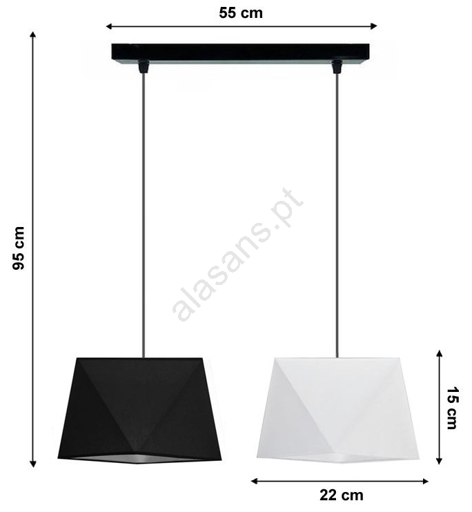 Candelabro num fio DIAMENT 2xE27/60W/230V preto e branco caracteriza-se por um design agradável e funcional.  Uma lâmpada com casquilho E27 é adequada para a iluminação Aqui, pode comprar outras lâmpadas a preços vantajosos. Terá um complemento interessante para a sua casa.