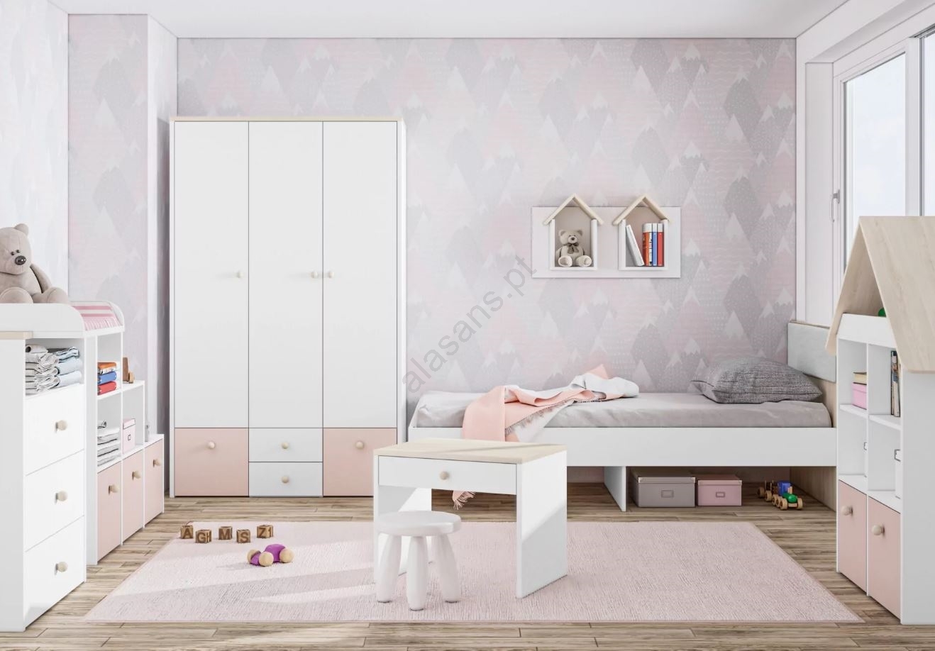 • Acabamento na cor faia e branco.