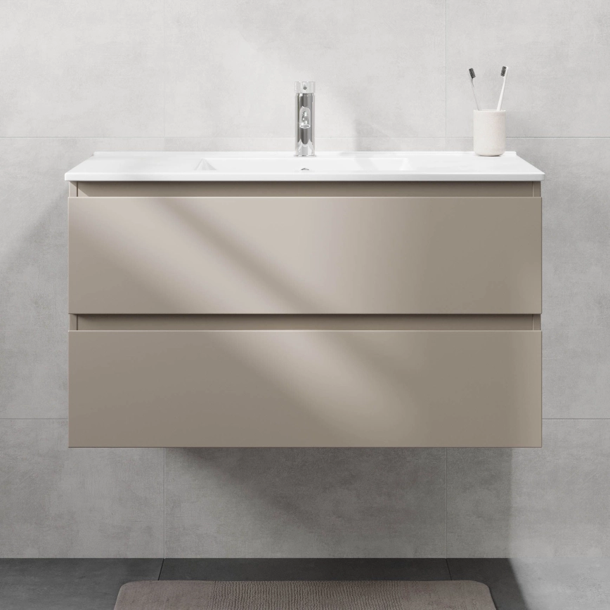 • Oferece amplo espaço de arrumação para artigos de casa de banho e um espaço reservado para tubagens e sifão.