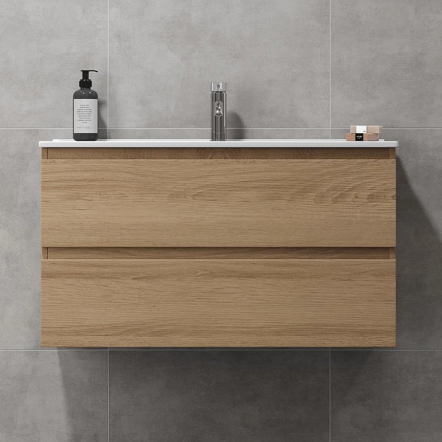 Móvel de casa de banho HENRY com lavatório, 91 cm, carvalho