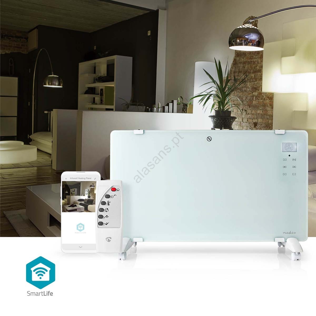 Aquecedor elétrico/convector 2000W/230V com Wi‑Fi, IP24 e termostato