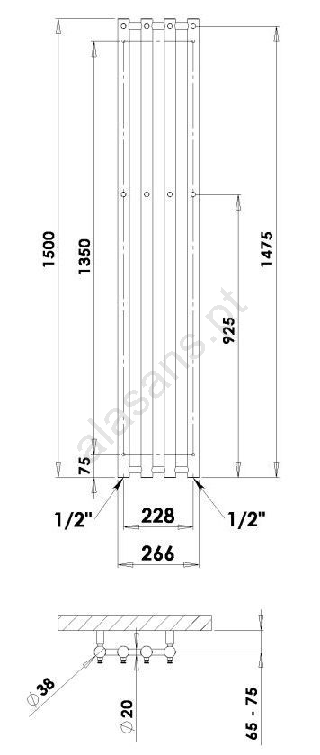 P.M.H. R2W - Radiador escada para casa de banho ROSENDAL 350W 150 cm branco