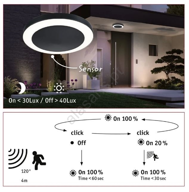 Paulmann 94526 - LED/14W IP44 Iluminação de teto exterior com sensor CIRCULA 230V