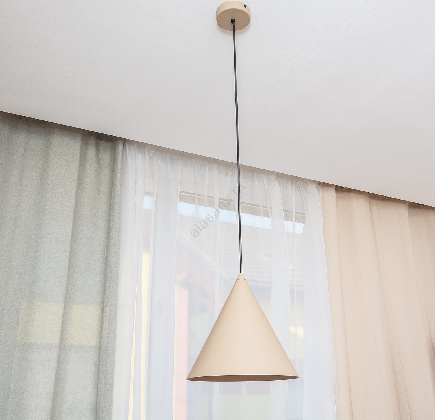 Pendente em cabo ETNA II 1xE27/15W/230V, diâmetro 25 cm, bege