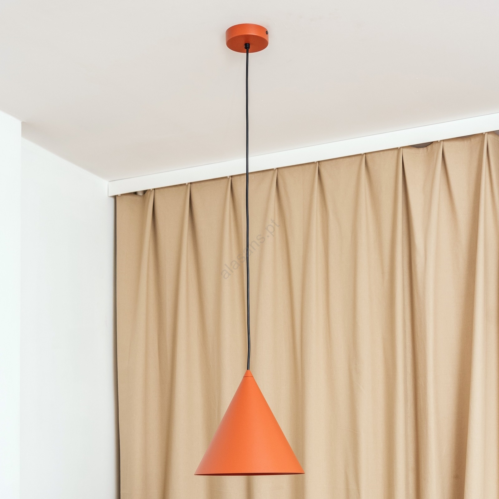 Pendente em cabo ETNA II 1xE27/15W/230V Ø 25 cm laranja caracteriza-se por um design agradável e funcional.  Uma lâmpada com casquilho E27 é adequada para a iluminação Aqui, pode comprar outras lâmpadas a preços vantajosos. Terá um complemento interessante para a sua casa.
