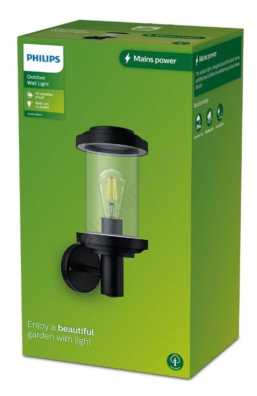 Philips - Iluminação de parede exterior LISTRA 1xE27/25W/230V IP44 caracteriza-se por um design agradável e funcional.  Uma lâmpada com casquilho E27 é adequada para a iluminação Aqui, pode comprar outras lâmpadas a preços vantajosos. Terá um complemento interessante para a sua casa.