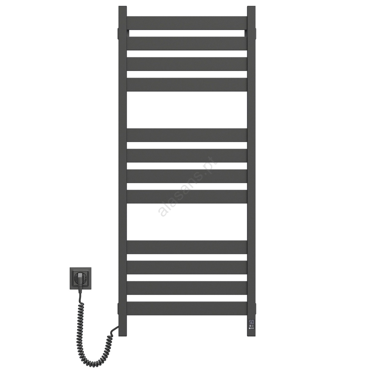 Toalheiro aquecido para casa de banho com termóstato LARGO 541W/230V 120,6 cm IP44 preto esquerdo quadrado