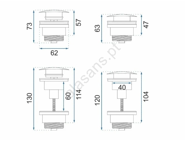 REA-A4100 - Válvula CLICK-CLACK para lavatório Ø 6,4 cm, preto brilhante
