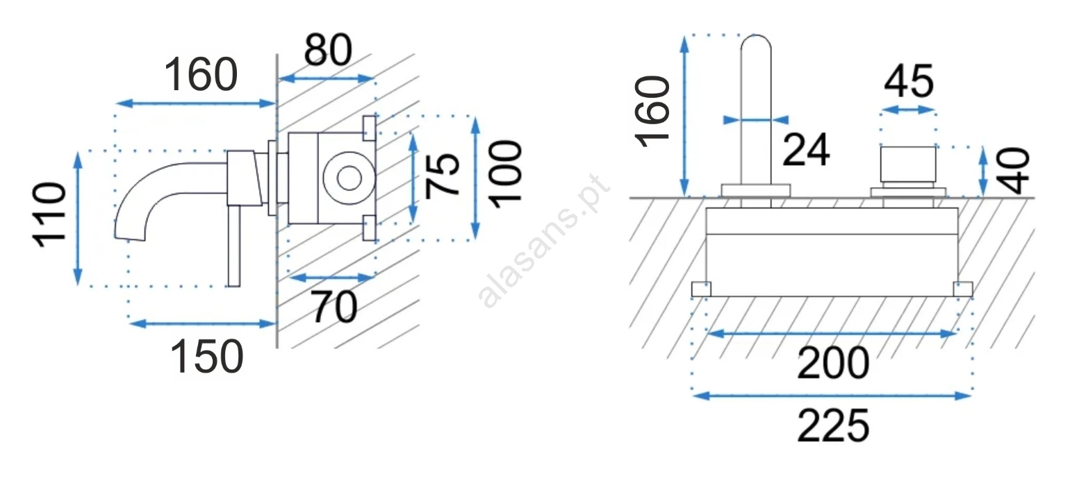 REA-B8652 - Torneira de lavatório para instalação embutida LUNGO, acabamento dourado escovado